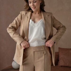 🤍 Елегантен женски сет – сако со панталони во беж нијанса
