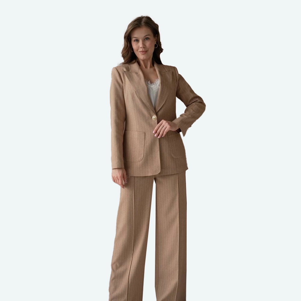 🤍 Елегантен женски сет – сако со панталони во беж нијанса