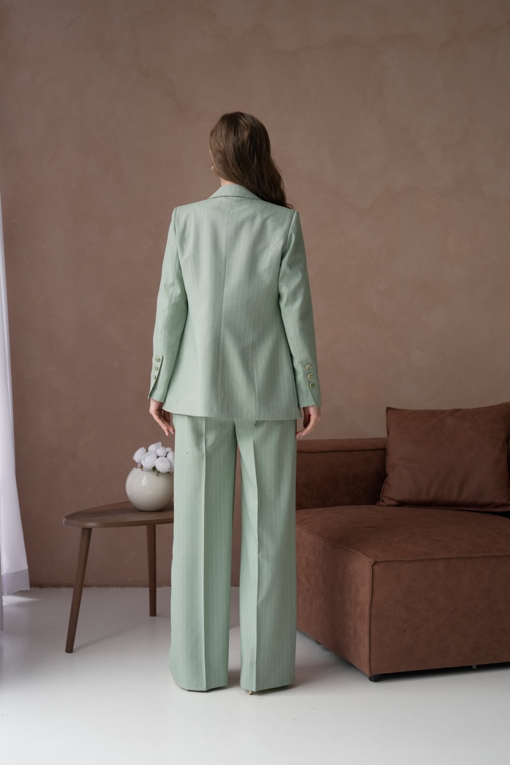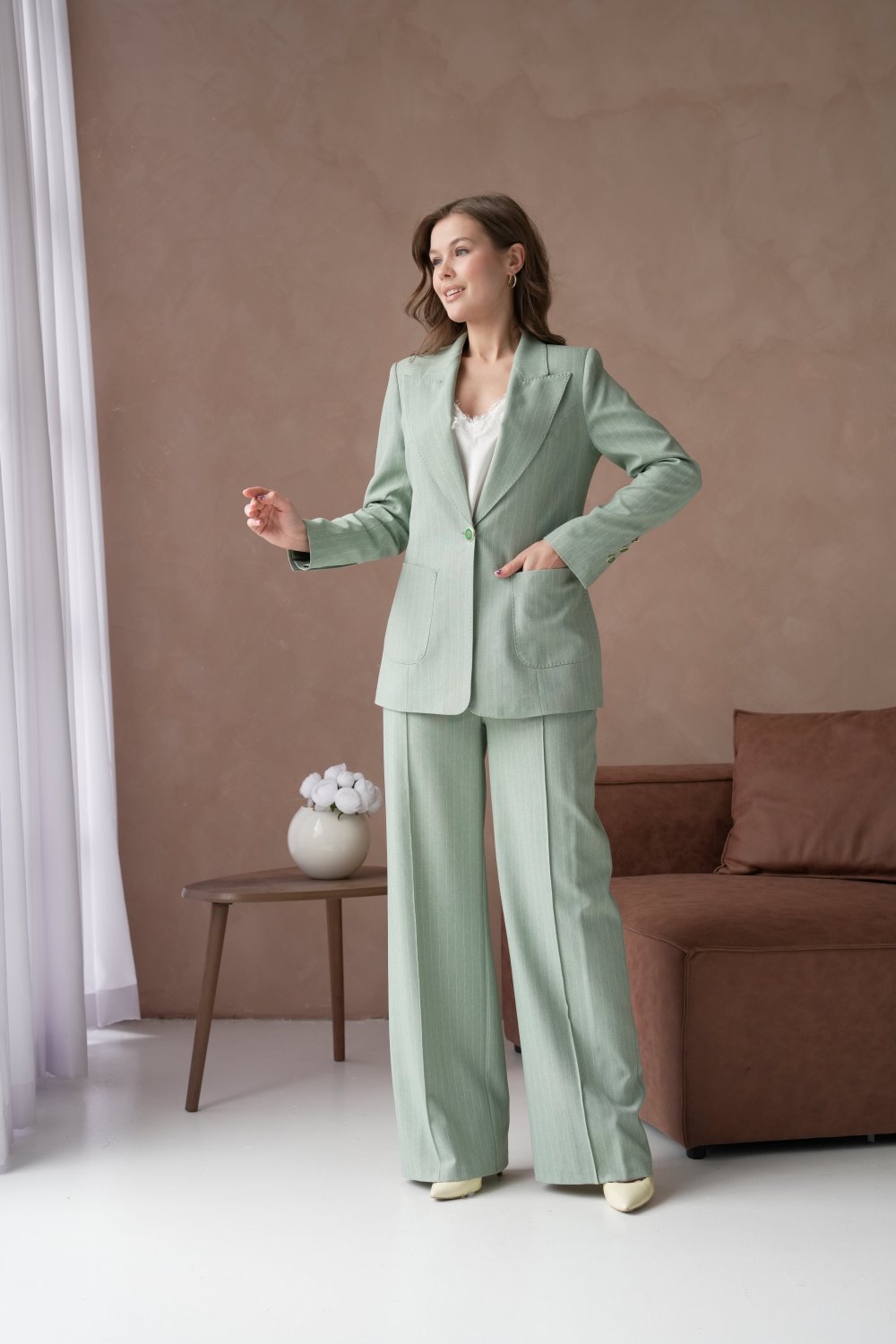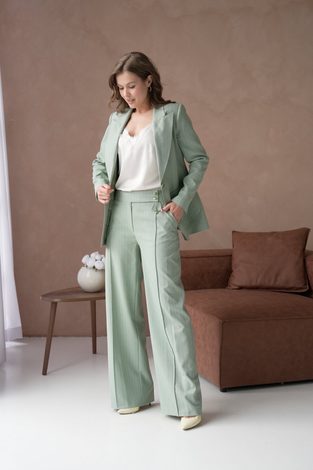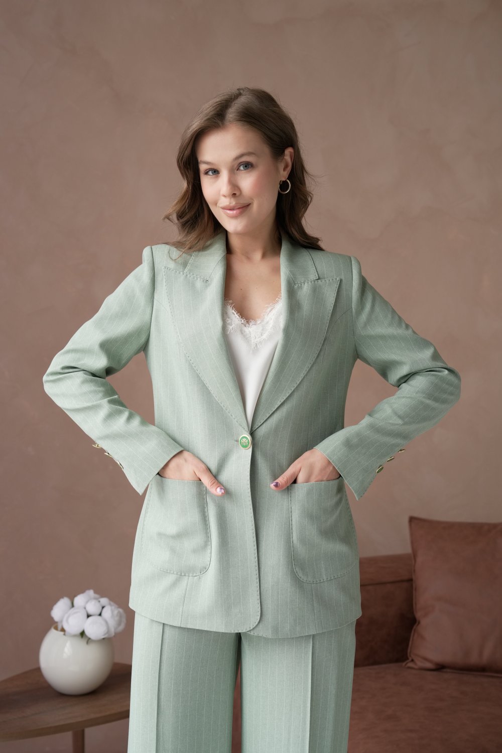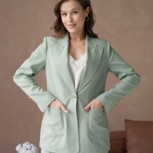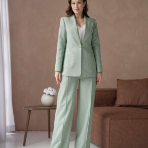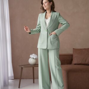 🤍 Елегантен женски сет – сако со панталони во минт зелена боја