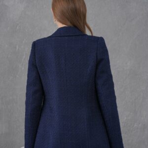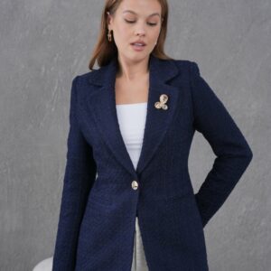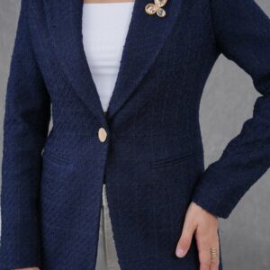 Ова елегантно женско сако е совршена комбинација на стил, удобност и висок квалитет. Изработено е од фина ткаенина со уникатна текстура, која му дава луксузен изглед и овозможува пријатно носење во текот на целиот ден.