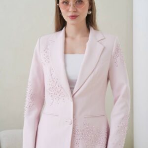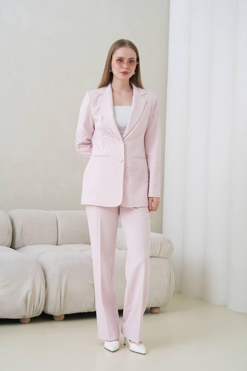 Женски костум сако со панталони – светло розева боја